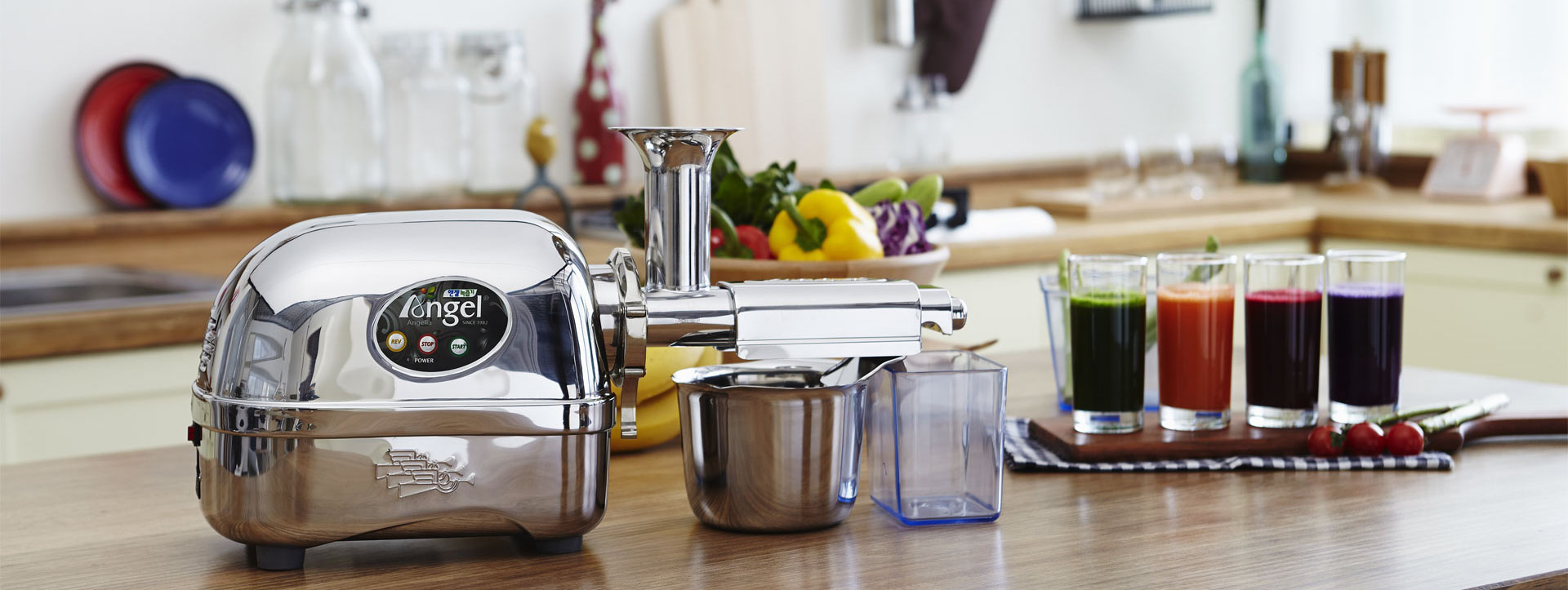 {"id":1933363839074,"title":"Super Angel Deluxe","handle":"super-angel-deluxe","description":"\u003cdiv class=\"video-responsive\"\u003e\u003ciframe src=\"\/\/www.youtube.com\/embed\/ujmA1uwLD-s\" width=\"420\" height=\"315\" frameborder=\"0\" allowfullscreen=\"\"\u003e\u003c\/iframe\u003e\u003c\/div\u003e\r\n\u003cp\u003e\u003cbr\u003e\u003cbr\u003e\u003c\/p\u003e\r\n\u003cp\u003e\u003cstrong class=\"blue\"\u003e2015 - 2016 NEWLY UPGRADED, FULLY AUTOMATIC, IMPROVED. THE MAJOR PARTS INCLUDING MOTOR, GEAR BOX, COOLING SYSTEMS, SAFETY SENSORS \u0026amp; CONTROL PANELS ARE UPGRADED AND REINFORCED TO COMPLY WITH U.S. ELECTRICAL SPECIFICATIONS.\u003cbr\u003e\u003c\/strong\u003e\u003c\/p\u003e\r\n\u003cp\u003e\u003cstrong class=\"orange\"\u003eMODEL PRO + SOFT FRUIT ATTACHMENT (OPTIONAL ATTACHMENT OF SOFT FRUIT EXTRACTING SCREEN HOUSING INCLUDED)\u003c\/strong\u003e\u003c\/p\u003e\r\n\u003cp\u003e\u003c\/p\u003e\r\n\u003cul class=\"mylist\"\u003e\r\n\u003cul class=\"mylist\"\u003e\r\n\u003cli\u003e\u003cstrong class=\"blue\"\u003eAnti-jamming system by self-adjusting speed control when overloading\u003c\/strong\u003e\u003c\/li\u003e\r\n\u003cli\u003e\u003cstrong class=\"blue\"\u003eAutomatic reverse function when jamming\u003c\/strong\u003e\u003c\/li\u003e\r\n\u003cli\u003e\u003cstrong class=\"blue\"\u003eAutomatic cooling system when overheating inside the juicer\u003c\/strong\u003e\u003c\/li\u003e\r\n\u003cli\u003e\u003cstrong class=\"blue\"\u003eAutomatic self-controlling motor thermal sensor\u003c\/strong\u003e\u003c\/li\u003e\r\n\u003cli\u003e\u003cstrong class=\"blue\"\u003eNewly designed main control board\u003c\/strong\u003e\u003c\/li\u003e\r\n\u003c\/ul\u003e\r\n\u003c\/ul\u003e\r\n\u003cp\u003e\u003c\/p\u003e\r\n\u003cp\u003e\u003cbr\u003e Own the reliable and premium juicer for your better health. We recommend a more reliable, heavy duty constructed, powerful juicer that triturates (crush and grind into very fine particles) and presses with a slow rpm (keeping enzymes intact and generating no heat) that guarantees you'll be able to juice even the more fibrous green vegetables and grasses. You can taste and see the difference, as more value is extracted from a vegetable, more pigments or color is also extracted. This is why Super Angel prepared juice is darker and richer in color when compared to that of other juicers. The difference in quality is also apparent in taste. Juices extracted by the Super Angel Juicer are richer and offer a more full-bodied flavor.\u003cbr\u003e \u003cbr\u003e\u003cspan style=\"color: #ff6600;\"\u003e\u003cstrong\u003eFree Scrubbing Bristle, \"Premium Brush\" \u003cbr\u003e\u003cstrong\u003eFree Glass Jar for Juice Collecting\u003c\/strong\u003e\u003c\/strong\u003e\u003c\/span\u003e\u003c\/p\u003e\r\n\u003cp\u003e- Differences among 4 models -\u003cbr\u003e \u003cbr\u003e 1) \u003cstrong\u003ePRO \u0026amp; PLUS\u003c\/strong\u003e : The only difference is that the Model PRO includes the anti-jamming auto reverse feature where the same process will be done manually on the PLUS. Both models are made of SUS-304 high quality food grade stainless steel.\u003cbr\u003e \u003cbr\u003e 2) \u003cstrong\u003ePRO \u0026amp; DELUXE\u003c\/strong\u003e : The difference is that the Model Deluxe includes the extra attachment for Soft Fruit Extracting Housing. Both models are made of SUS-304 high quality food grade stainless steel. \u003cbr\u003e \u003cbr\u003e 3) \u003cstrong\u003ePRO \u0026amp; PREMIUM DELUXE\u003c\/strong\u003e : Only two(2) major parts of Twin Gears(auger) \u0026amp; Standard Extracting Housing of Model Premium Deluxe are made of SUS-316 surgical grade stainless steel. The remaining other parts of Model Premium Deluxe are made of 304 high quality food grade stainless steel. The Model Premium Deluxe doesn't include the extra attachment of Soft Fruit Extracting Housing. \u003cbr\u003e \u003cbr\u003e - Difference between Food Grade and Surgical Grade stainless steel -\u003cbr\u003e \u003cbr\u003e Chemical Composition of Stainless Steel Alloy\u003cbr\u003e SUS-304(Food grade) : Chromium 18%, Nickel 8% \u003cbr\u003e SUS-316(Surgical grade) : Chromium 16%, Nickel 10%, Molybdenum 2%, SUS-316 surgical grade stainless steel is more resistant to sea salt, sea water and de-icing salts. \u003cbr\u003e Above two kinds of stainless steel grades are safe, not leached out, not reacted with food, not rusted as same as your stainless steel saucepan, stainless steel pot. \u003cbr\u003e \u003cbr\u003e Model Deluxe : $1,450.00 ($1,490.00 Starting 11\/1\/2015) Free Shipping within the 48 contiguous states only.\u003cbr\u003e\u003cbr\u003e\u003c\/p\u003e\r\n\u003cp\u003eHere's to your health, pure and natural juice free from preservatives and additives. Now you can extract all your favorite fruits and vegetables and keep all of what nature intended. The Super Angel\u003cem\u003e \u003c\/em\u003eJuicer's continuous pulp ejection allows for high quality juice production in a quick and efficient way. The only guarantee of great tasting quality comes from extracting juice yourself, straight from fresh fruits or vegetables. The Super Angel\u003cem\u003e \u003c\/em\u003eJuicer will give you juice Pure and Straight the Natural Way . Nothing tastes better than fresh juice, squeezed straight from the produce. The slow 82 RPMs produce very little oxidation, and therefore produce the highest nutrient juice and keeps more enzymes intact because of less heat and friction by its low turning speed. The Super Angel has the lowest rpm of any other twin gear juicer on the market. Fresh, Enzyme-Rich, Live Juice from Super Angel Juicer ! The Super Angel\u003cem\u003e \u003c\/em\u003eis at the pinnacle of the triturating-press juicing incorporating twin gear technology and the answer to virtually all fruit and vegetable juicing needs. With rigorous, heavy-duty construction, the all stainless steel body of the Super Angel\u003cspan\u003e\u003cspan\u003e is an expert crafted, hand-built masterp
